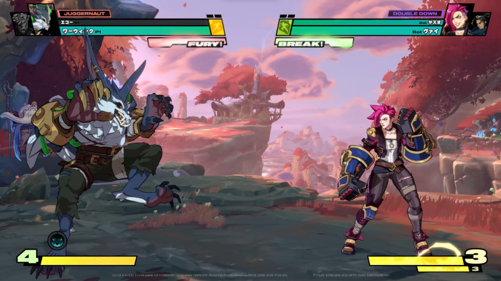 触っていてだいぶ気持ちがいい一方で、遊んでいるとちょこちょことチームコンボゲーらしい複雑な共通システムが多数見え隠れすることにも気づいてくる。こう……苛烈な起き攻めで相手をはちゃめちゃにするみたいな……コンボが煮詰まってくるととんでもないことになりそうな予感が……。